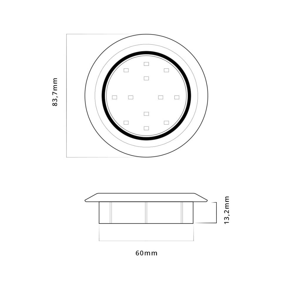 OBS: Embutidos injetados em plástico montados com placa de LED SMD de 2W com 12 LED SMD28X35 e furo do nicho em 60mm.