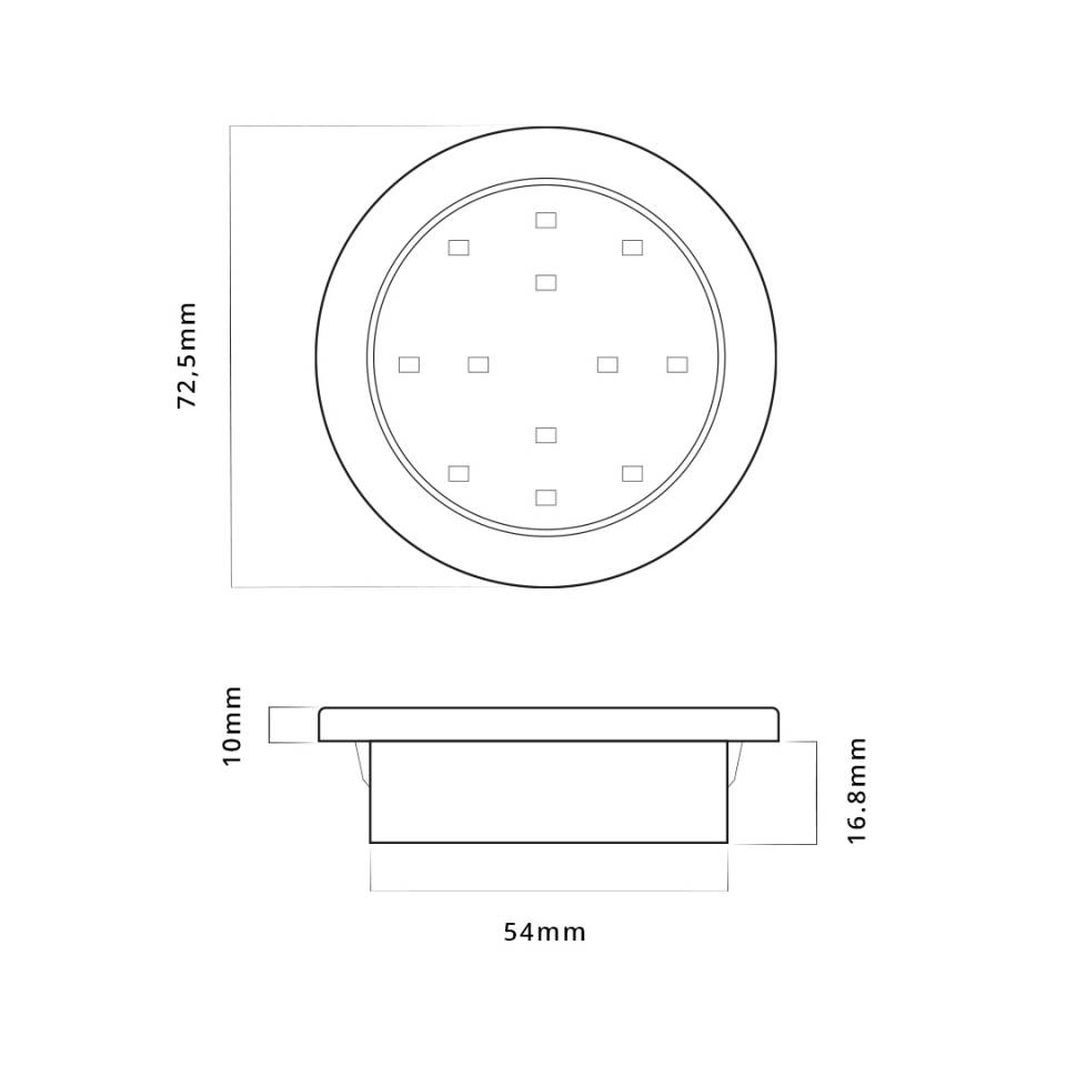 OBS: Embutido para móveis em LED SMD 2W com 12 LED 28x35 e furo do nicho em 54mm.