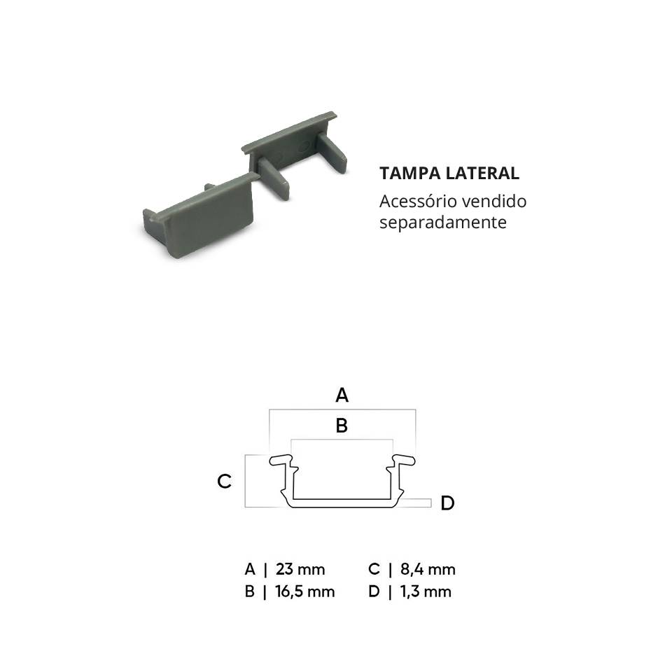 OBS: Perfil extrusado em barra de 3 metros e embalagem com 10 perfis com lente. O modelo Perfiled Retangular, faz com que o LED não emita radiação UV, e o material do perfil é feito em PVC e lente em acrílico ou ABS.